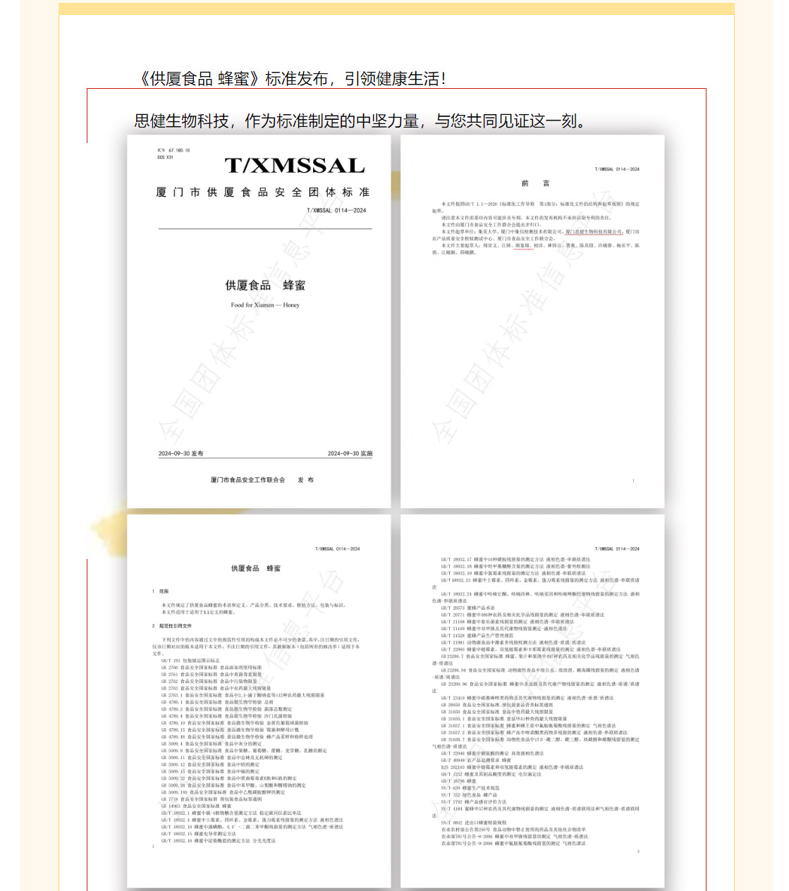 快訊:供廈標(biāo)準(zhǔn)《供廈食品 蜂蜜》 2024-9-30發(fā)布實施 思健生物科技很榮幸參與該標(biāo)準(zhǔn)制定
